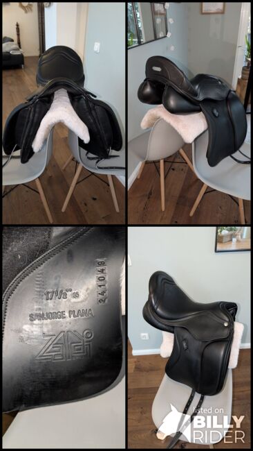Siodło ujeżdżeniowe Zaldi San Jorge KW35 17,5 cala siodło barokowe - Tutaj sprzedaję moje siodło ujeżdżeniowe od Zaldi. Model nazywa się San Jorge Plana. Rozmiar siedziska to 17,5 cala, a szerokość komory jest fabrycznie ustawiona na 35. Siodło ma płytę wpustową w kształcie litery U. Dzięki temu jest szczególnie odpowiednie dla koni z dużą ilością łopatek lub o zaokrąglonej budowie. Komora jest zimna i płynnie regulowana. Pozwala to na łatwą personalizację. Siodło ma szeroki kanał panelowy.