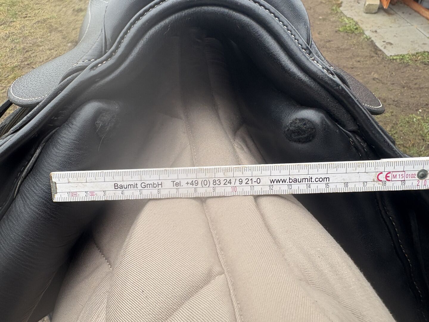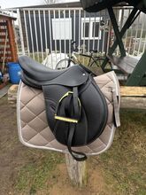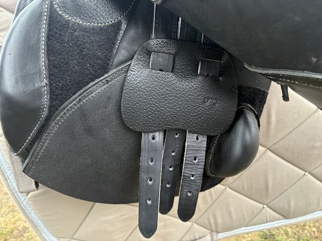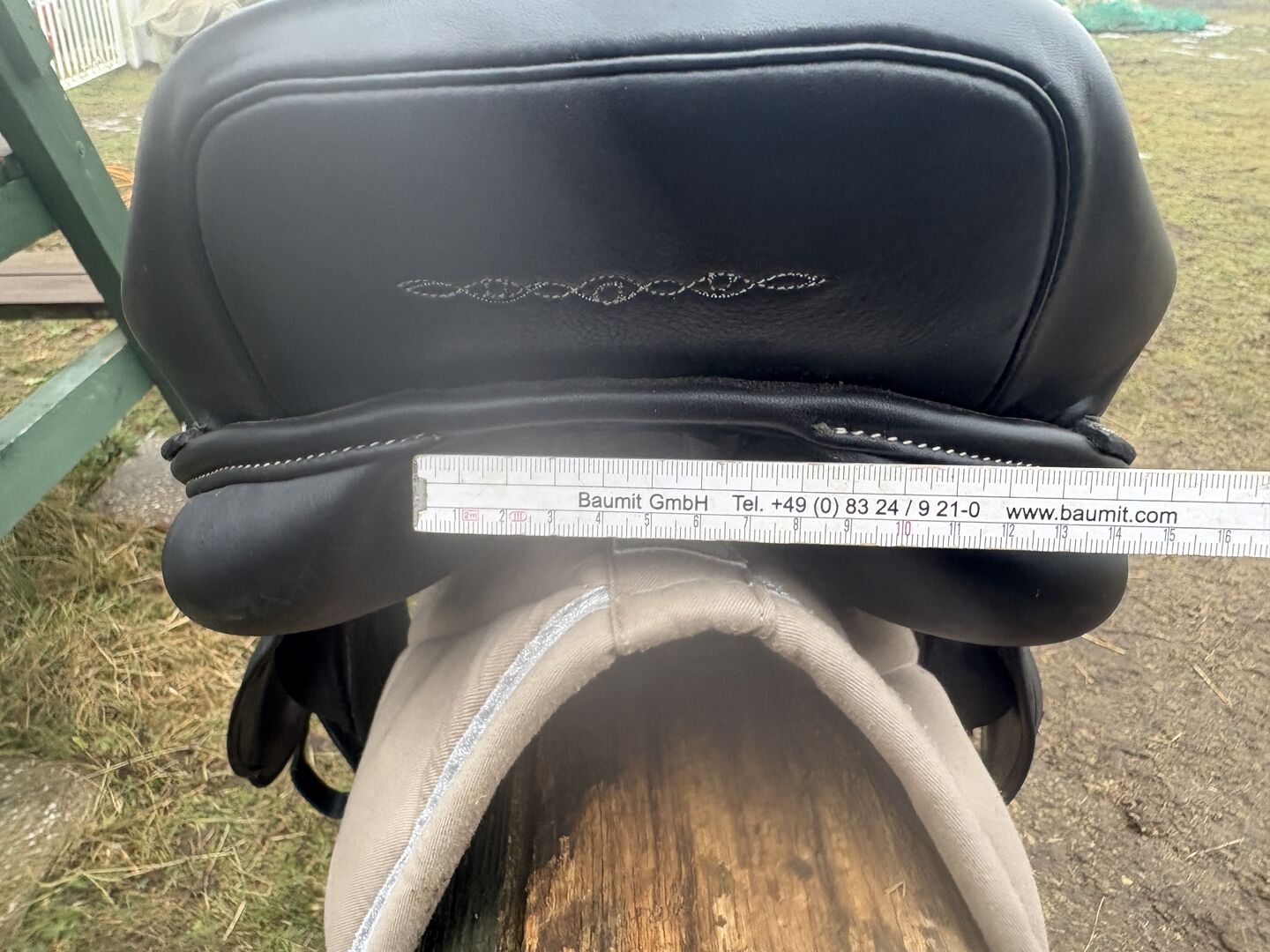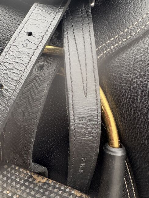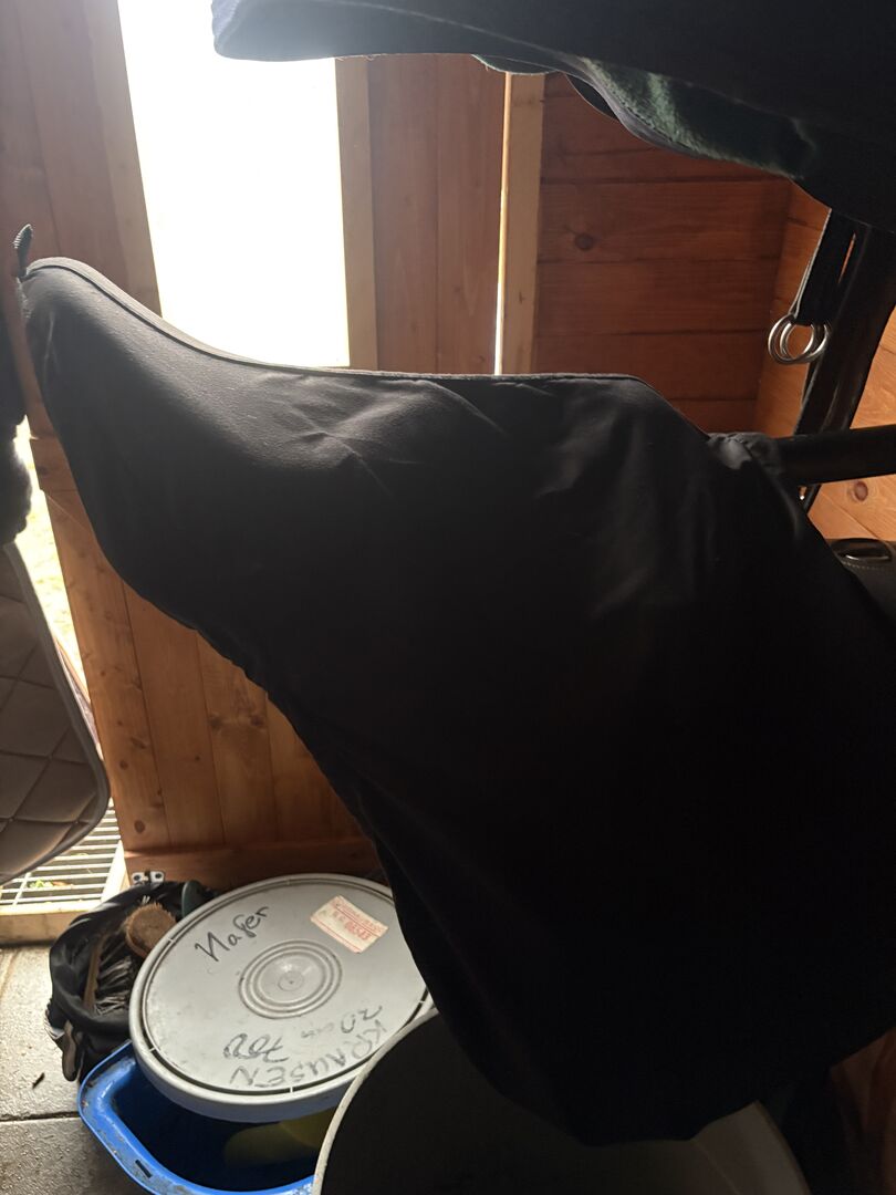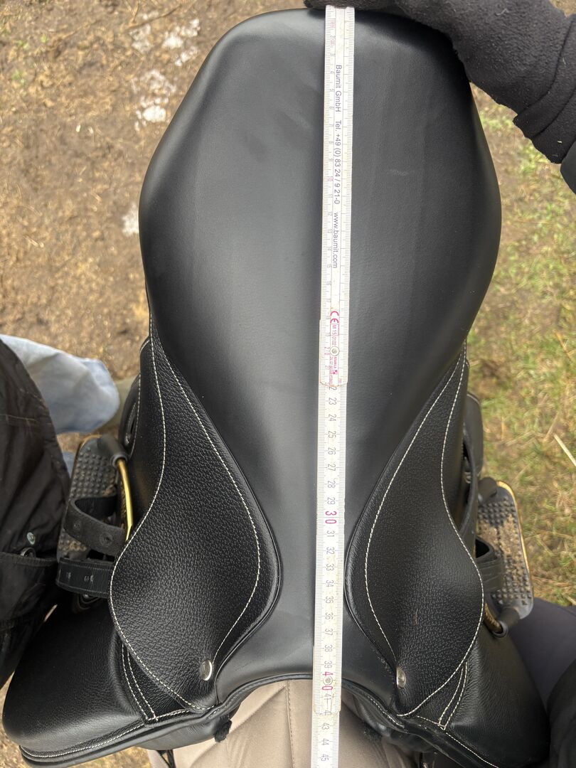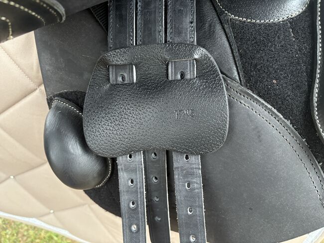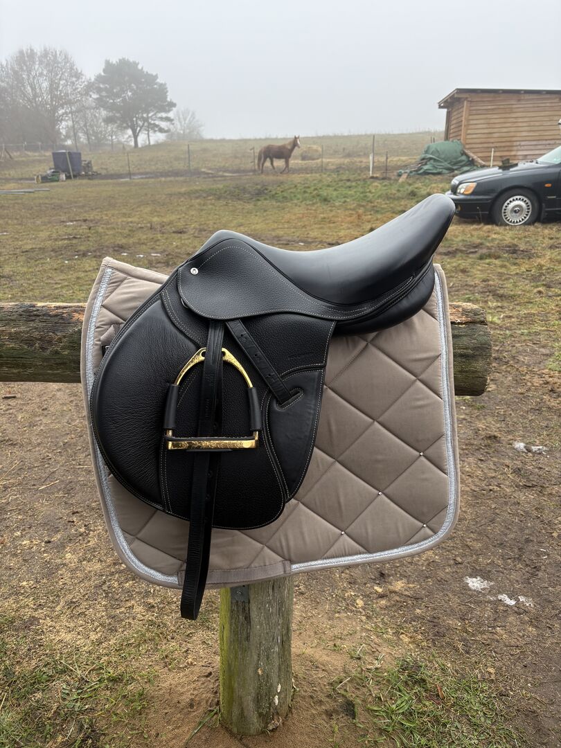 Siodło VS czarne ze strzemionami skórzanymi Fouganza - Na sprzedaż jest mało używane siodło VS (17,5 cm) z wymienną płytą wpustową. Również na sprzedaż: Skórzane strzemiona, podkładka pod siodło i płyta wpustowa w rozmiarach S, M, L, a także szablon do pomiaru kłębu. Wszystko zostanie ponownie wyczyszczone. Wszelkie uszkodzenia znajdują się na zdjęciach. Z 3 wpustami S, M, L i szablonem do pomiaru.