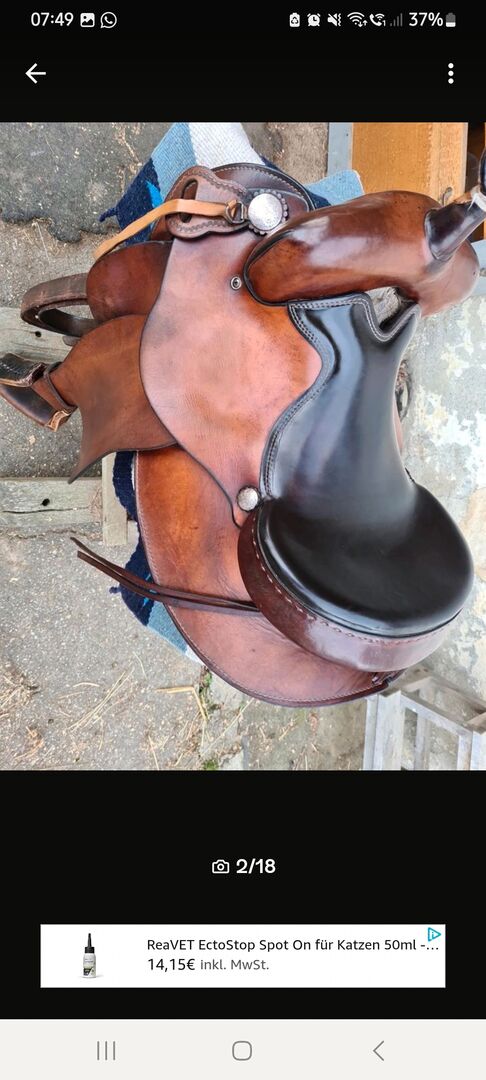 Siodło western Continental Roundskirt + 2x podkładki - Sprzedaję moje ukochane westernowe siodło, ponieważ nie pasuje już na mojego konia ze względu na zmianę postury. Niestety znaczek producenta zaginął, dlatego sprzedaję je jako no-name. Ale jest to siodło Continental (według specjalisty i patrz ostatnie zdjęcie dla porównania). Ma prawdziwe srebrne okucia Montana. Uważam, że jest bardzo wygodne, ale to kwestia opinii. - Czysta powierzchnia siedziska to 40cm. - Mierzona od rogu ok. 50cm.