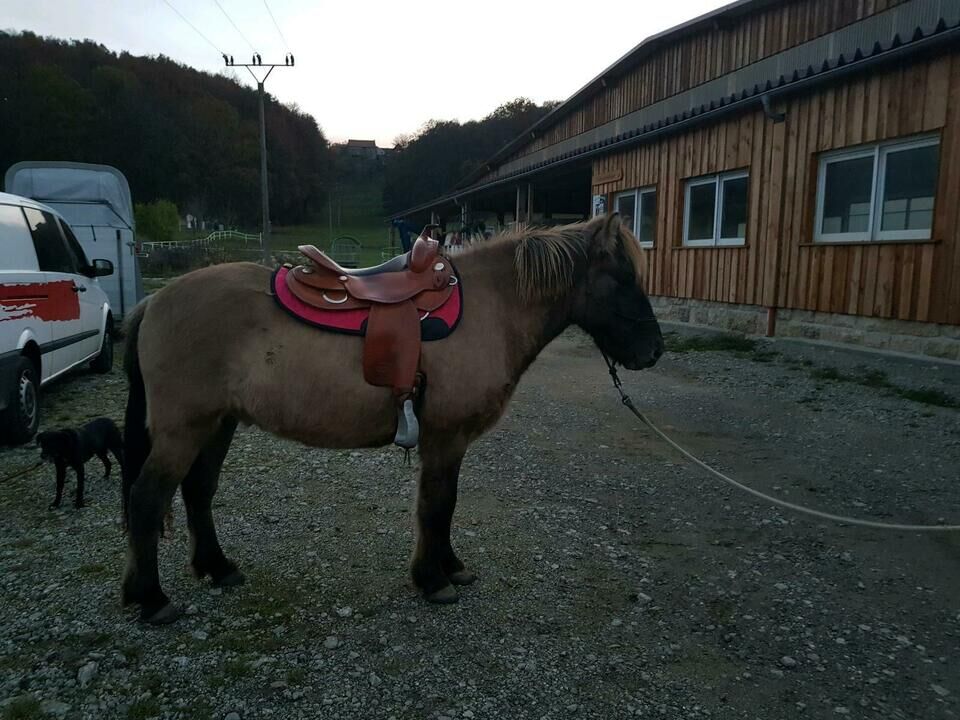Siodło western od Way out West, Equiflex tree M8NAI (Fullquarter) - Sprzedaję moje trzyletnie siodło westernowe z Way out West, ponieważ stało się zbyt wąskie w łopatce dla mojej 5-letniej wówczas dziewczynki. Siodło, które nadaje się również do krótkich grzbietów, ma skręcone błotniki o małym rozstawie otworów. Siodło (kolor "honey oiled") ma wzmocnione siedzisko z brązowego nubuku, 16"; strzemiona mają ładny grawerunek. Pierwotna cena wynosiła 2778 EUR. Na zdjęciach widać ślady użytkowania: mój kucyk miał kiedyś siodło niefortunnie włożone między zęby, dlatego w tym miejscu jest mała skaza. Z tego powodu sprzedaję siodło za 1000 € VB. Jest superwygodny, a poza tym stosunkowo mało używany, ponieważ często jeździłam tylko z podkładką, a mój pięciolatek nie był jeszcze regularnie jeżdżony.