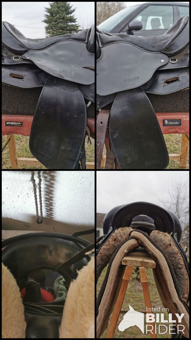 Siodło Western Trail od Podium - Używane siodło rekreacyjne/western bez klaksonu od Podium. Dobrze nadaje się do długich jazd crossowych, a także do pracy na trasie lub na krótkich dystansach. Dzięki zamszowi siedzi się w nim wygodnie. Posiada normalne ślady użytkowania. Było używane na bardzo wąskim koniu z dużym pęknięciem grzbietu.