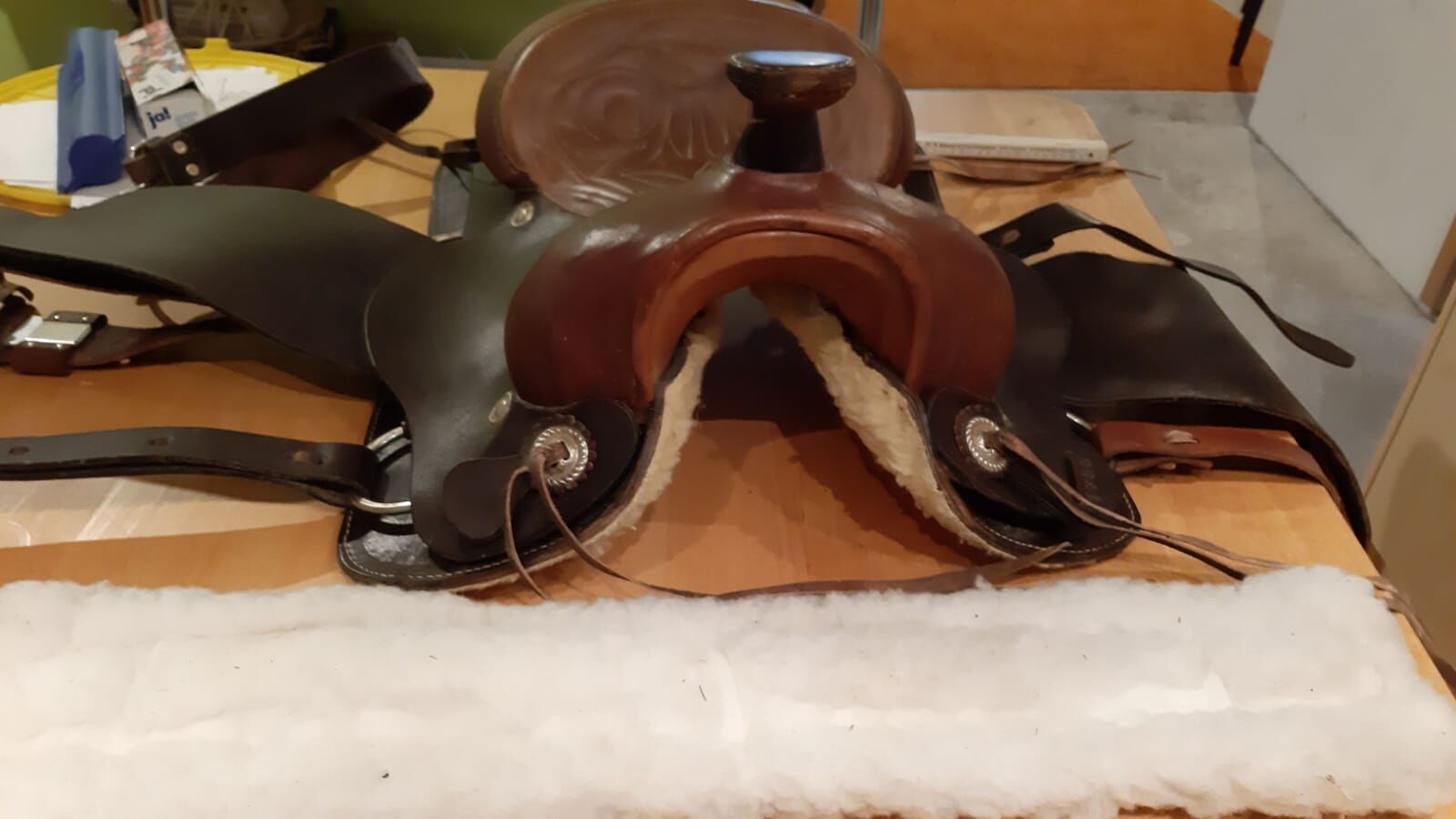 Siodło westernowe - Był 3 razy na koniu, koń był mniej więcej jak haflinger. Nie wiem, jaki to rodzaj siedzenia. Przyprowadzała go także, aby go wypróbować, jeśli nie było to zbyt daleko. Nie wiem, kiedy dokładnie został kupiony. To od mojego kolegi.