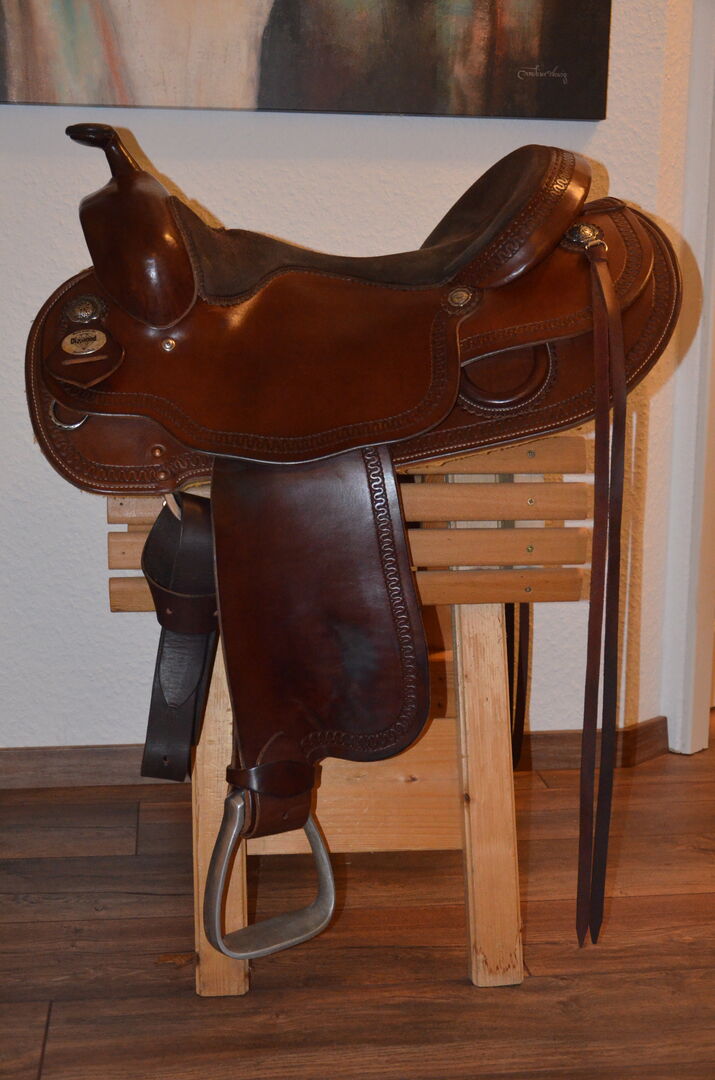 Siodło westernowe - Sprzedaję moje super wygodne siodło westernowe Diamond C. Kupiłem go nowego w Western Enterprise i od tamtej pory nie używałem go zbyt często. Używałam go na bardzo szerokim haflingerze, który często nie mógł jeździć z powodu artretyzmu, więc siodło spędzało dużo czasu w ogrzewanej, suchej siodlarni. Zawsze miałem też na siodle kożuch. Teraz mój koń może wreszcie przejść na emeryturę, a siodło trafić do nowego zespołu koń-jeździec, który chciałby znaleźć wygodne (dla jeźdźca i konia), a przy tym bardzo ładne siodło westernowe. Oczywiście siodełko ma drobne ślady użytkowania, ale naprawdę tylko kilka. Zapraszamy do wypróbowania siodła po wpłaceniu kaucji w wysokości ceny zakupu.