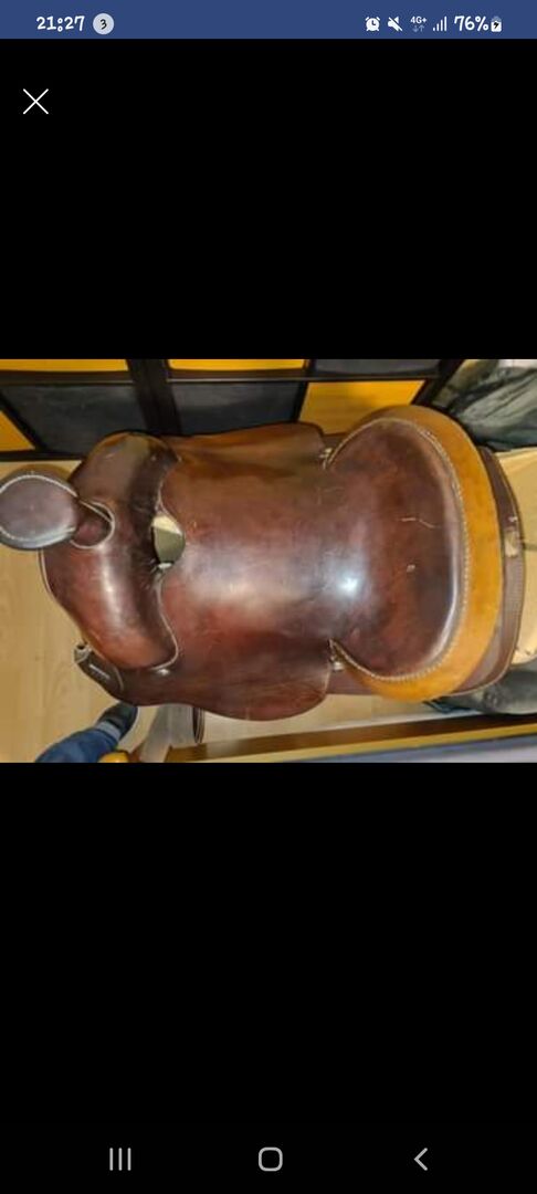 Siodło westernowe - Na sprzedaż jest siodło westernowe firmy Longhorn. Długość 62 cm, odległość między przełykami 31 cm. Służyła mi ona dobrze przez wiele lat, ale teraz mój kucyk jest za szeroki w ramionach. Dostępny jest również obwód o długości 62 cm.