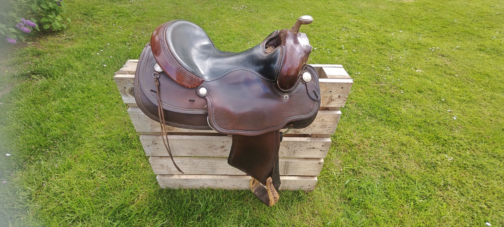 Siodło westernowe - Witam, Sprzedaję używane siodło western firmy Diamond C. Kupiłam go z drugiej ręki i nie używałam zbyt często. Zawsze wisiał przykryty i suchy. Normalne ślady użytkowania, ryski i dziwactwa (ostatnie zdjęcia), ale to nie wpływa na nic. Długość całkowita to ok. 66 cm Pozostałe wymiary znajdują się na zdjęciach.