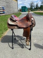 Siodło westernowe - Oferuję na sprzedaż używane westernowe siodło treningowe/ robocze w korzystnej cenie. Siodło wykazuje normalne ślady użytkowania na przestrzeni lat, ale nadal jest w pełni użyteczne. Surowa skóra na rogu siodła została niestety uszkodzona przez myszy, ale nie ma to żadnego wpływu na siodło. Siodło ma drzewo FQ ze średnim huśtawką i siedziskiem 16 mm. Wysyłka możliwa po uzgodnieniu