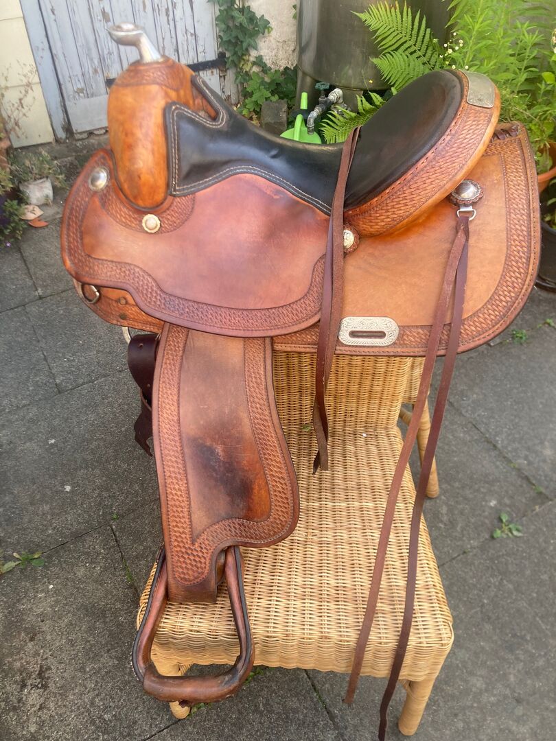 Siodło westernowe - Super wygodne westernowe siodło na sprzedaż Westernowe siodło, obecne ślady użytkowania, bardzo wygodne siedzisko od Continental Saddlery Co, ogólnie bardzo dobry stan, wymiary dostępne na zdjęciach. Siodło jest wysokiej jakości z markowymi okuciami (sprzączki Belvins).