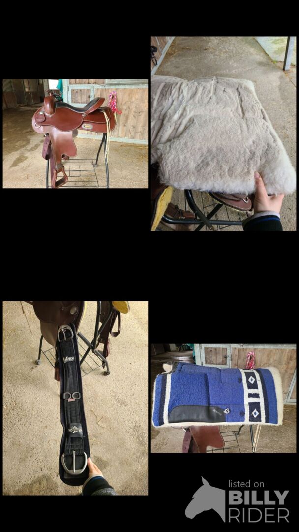 Siodło westernowe - Na sprzedaż siodło western, full quarter. Siodło jest sprzedawane jako kompletny zestaw, w tym: Pasujący pad pod siodło Western cinch (popręg)
