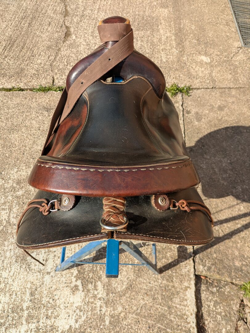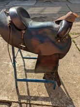 Siodło westernowe - Westernowe siodło w kolorze ciemnobrązowym, szerokie, duże siedzisko, ciężkie. Dalsze pomiary i zdjęcia pojawią się wkrótce.