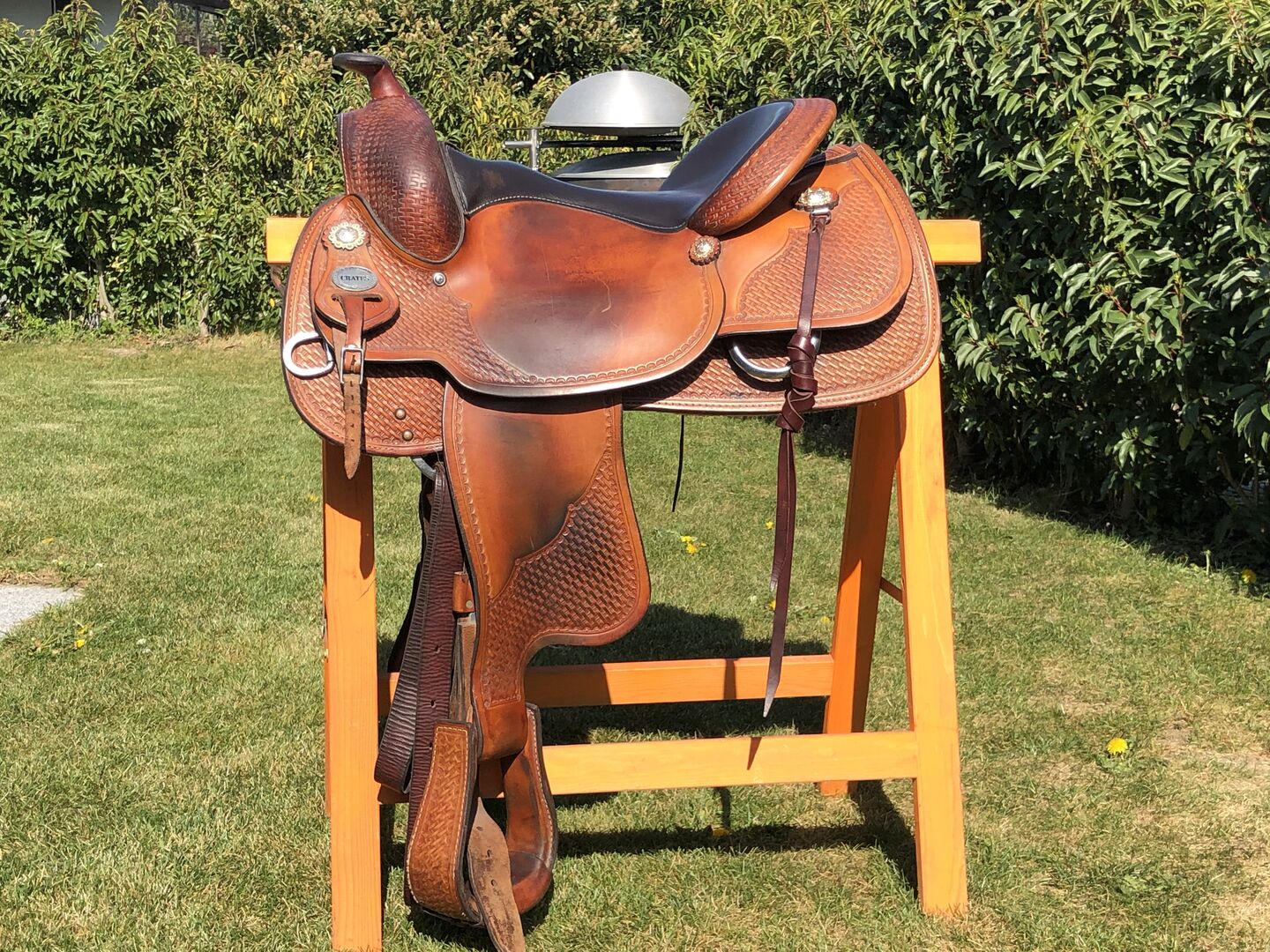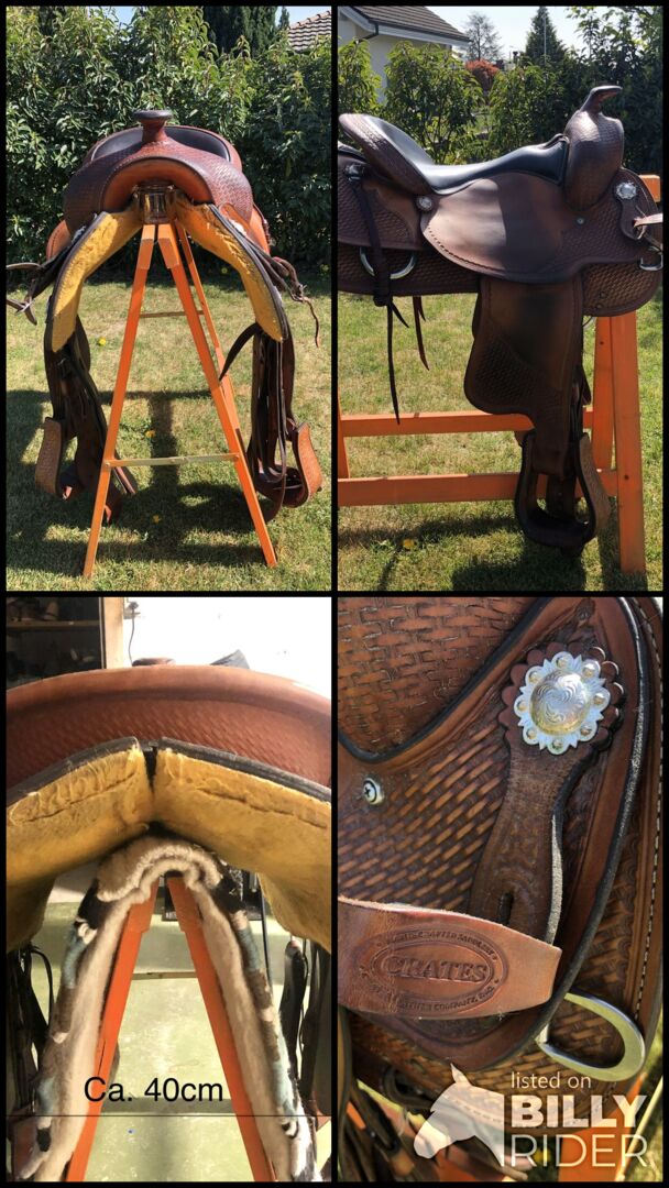 Siodło westernowe CRATES - Brand Crates Pure Seat 16 inch Normal Quarter Horse Size Jest w dobrym stanie i zadbane, ale ma normalne ślady użytkowania, które są również widoczne na zdjęciach! Siodło jest bardzo wygodne i ma dobre siedzisko. Siodło można przetestować przez 5 dni (zajezdnia) Cena podlega negocjacji.