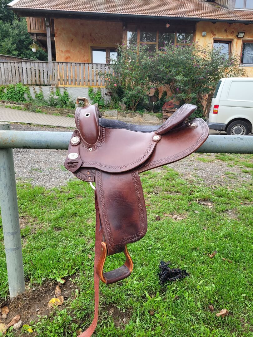 Siodło westernowe, Deuber Flex fit Vario 1305, jak nowe - Oferuję na sprzedaż mój niedawno zakupiony Deuber vario flex, ponieważ jest on niestety za długi dla mojego kuca. Siodło zostało kupione jako nowe w 2020 roku. Dostępna jest oryginalna faktura. Posiada drzewo L i dlatego nadaje się dla szerszych koni, ale także dla ćwiartek ect.