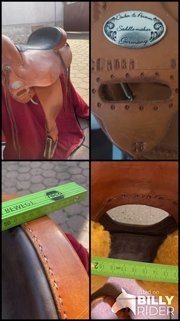 Siodło westernowe Deuber&Partner CL1031 Trail Rider - Sprzedam bardzo wygodne siodło westernowe Deuber Trail Rider CL 1031 o stałej szerokości kiełzna 04 (full quarter). Quarter) - był używany na moim krótkim PRE i teraz wraz z rozwojem stał się dla niego za wąski. Według mojego rymarza jest to typowe siodło arabskie/Quarter/Young horse/ Trotter. trotuar - siodło. Siodło dobrze nadaje się na krótkie końskie grzbiety, normalny do wysokiego kłębu i niewielką huśtawkę. Jest bardzo wygodny, zawsze był zadbany i przechowywany w suchym miejscu. Zobacz zdjęcia, aby zobaczyć wymiary. Siodło ma 3 i pół roku i jest w moim posiadaniu. Siodło jest świetne do jazdy po szlakach i wędrówek ze względu na swoją lekkość. Ślady użytkowania i kilka rys, ale ogólnie bardzo ładne siodło bez większych oznaczeń itp. Możliwość przymierzenia za kaucją przy odbiorze, wysyłka również możliwa ale nie na próbę. również możliwe, ale nie na próbę. Na podstawie numeru siodła i opisu można łatwo dopasować dopasowanie można łatwo określić i zważyć online. W razie jakichkolwiek pytań proszę o kontakt