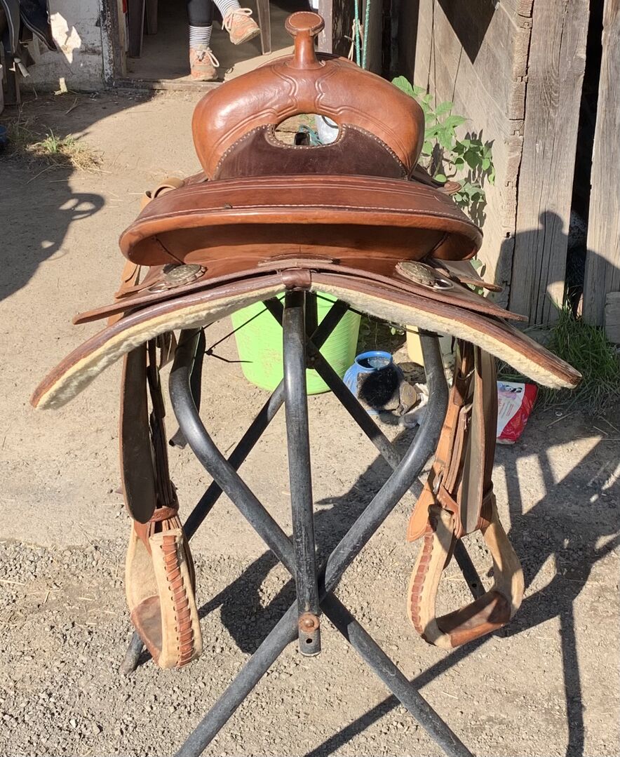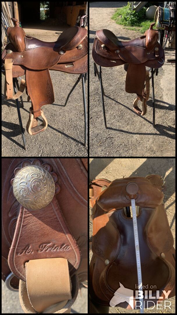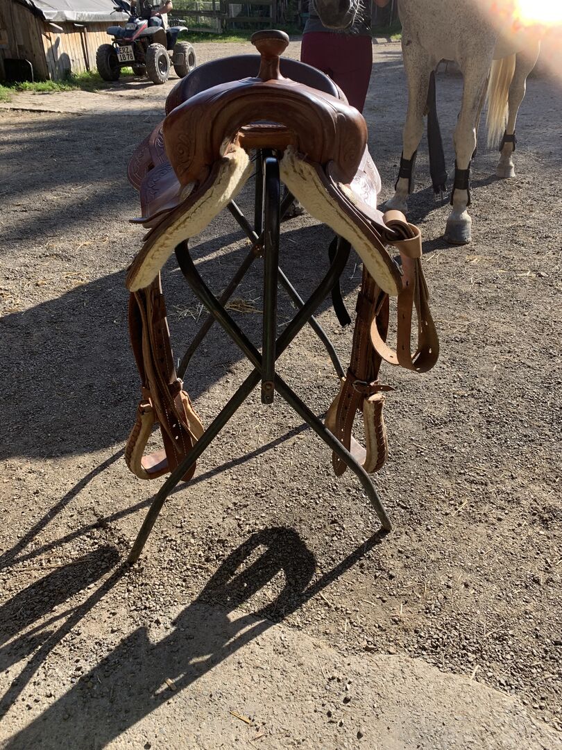 Siodło westernowe dla koni z wysokim kłębiem - - Nadaje się dla koni o wysokim kłębie. - Prawie nie nosi śladów użytkowania - W komplecie z podkładką pod siodło, bez pasów