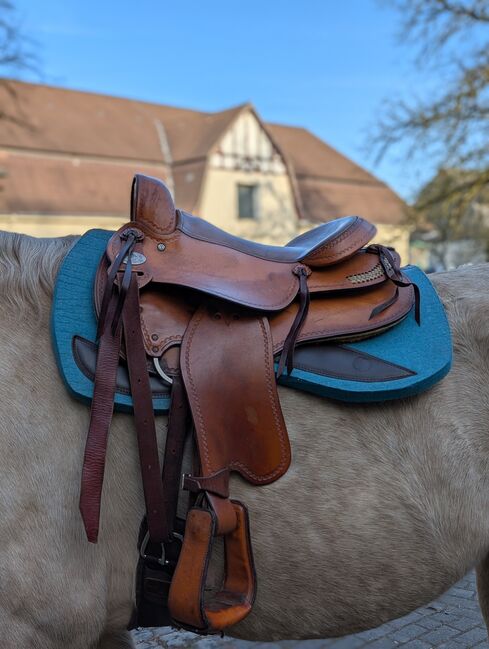 Siodło westernowe Double C Saddlery - Sprzedajemy to piękne westernowe siodło od Double C Saddlery. W zestawie podkładka, 2 popręgi i dyski/instrukcje dopasowania W razie jakichkolwiek pytań prosimy o kontakt!