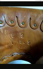 Rozmiar siedziska to 15,5, ale siedzi jak 16-calowy koń. siedzi jak 16-calowy koń. Jestem bardzo szczupła i wysoka, więc wciąż miałam w nim dużo miejsca. Błotniki są ruchome i nie wbijają się w nogę. Jeśli jesteś zainteresowany, po prostu skontaktuj się ze mną.