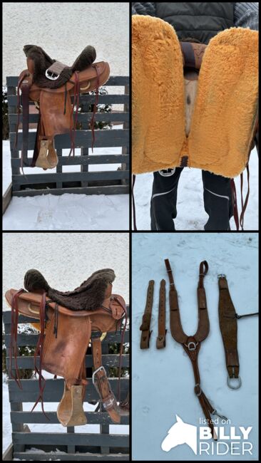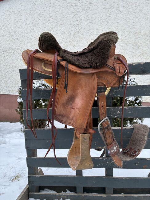 Siodło westernowe Old Time Vaquero - Westernowe siodło w bardzo dobrym stanie z popręgiem i napierśnikiem, niestety nie pasuje już na moją klacz. Bardzo łatwe w pielęgnacji ze względu na raff out. Skóra jagnięca nie jest wliczona w cenę zakupu
