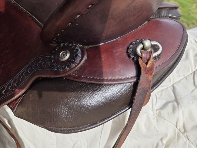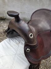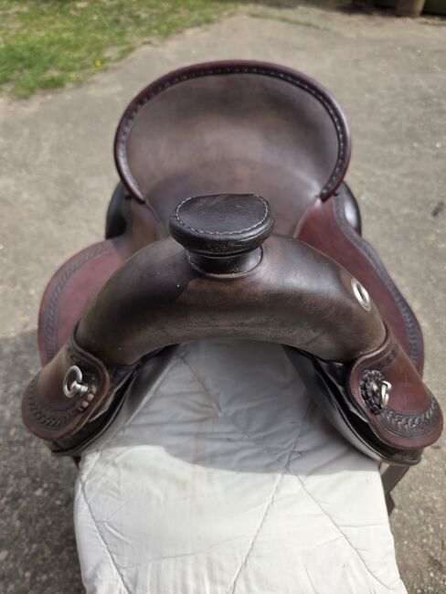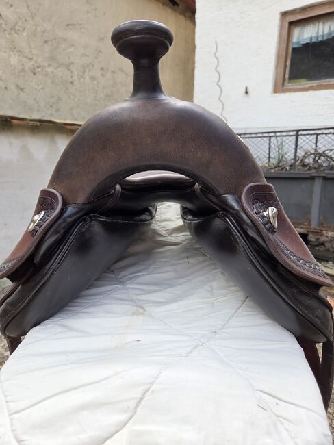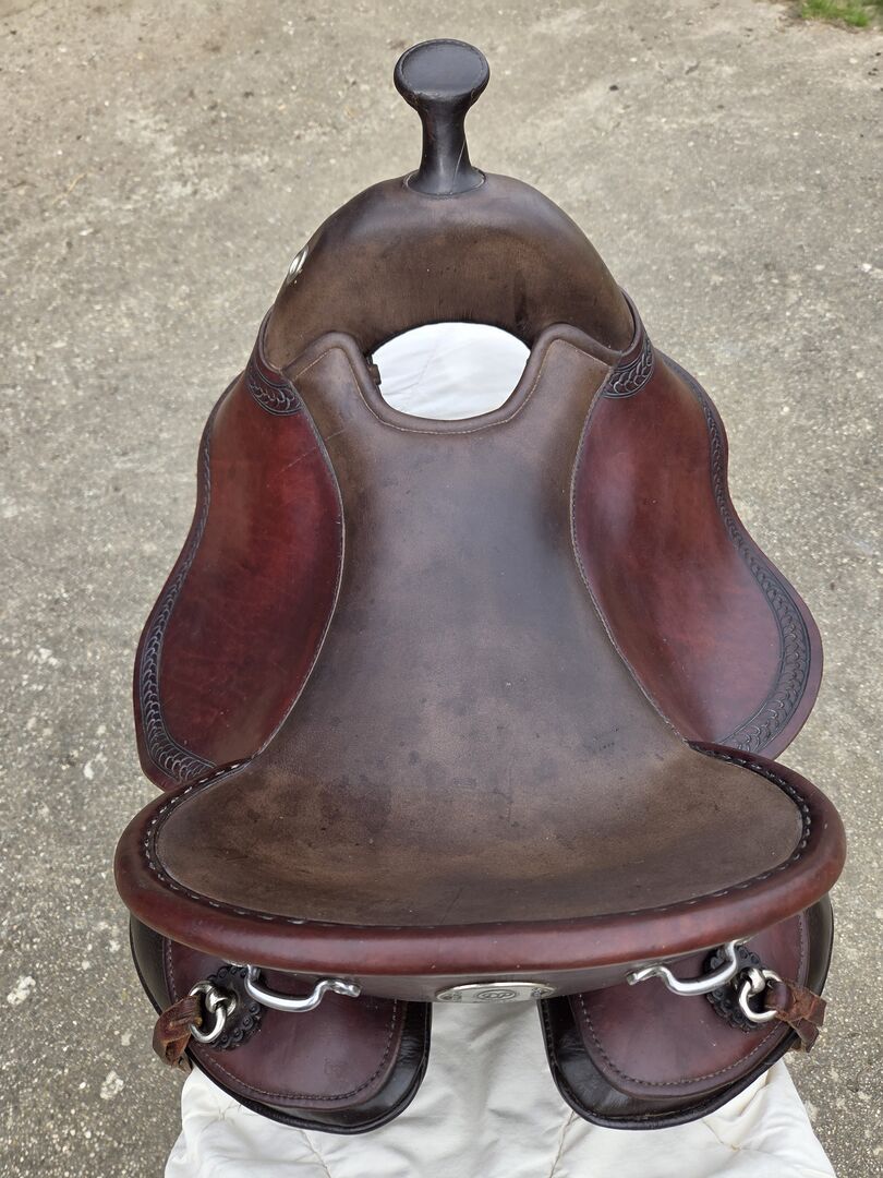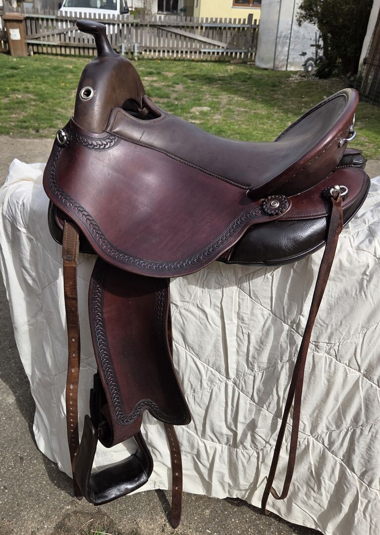 Siodło westernowe Quantum Short & Light - Sprzedaję moje bardzo dobrze utrzymane siodło westernowe Deuber Quantum Short & Light w rozmiarze siedziska S2. Siodło jest bezstopniowo regulowane dzięki drzewu Ultra-Flex, dzięki czemu można je optymalnie dostosować do różnych typów koni. Krótki obszar kontaktu (ok. 53 cm) sprawia, że jest ono szczególnie odpowiednie dla krótkich lub wrażliwych grzbietów koni.