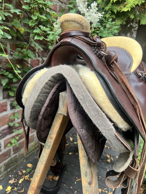 Całkowicie -Wyściełane siedzisko 15"/38 cm -Drewniane strzemię Rieser Bell Bottom ze skórzaną lamówką -Dostosowana podkładka z filcu wełnianego 25 mm -Podkładka pod siodło -Pasek do wiązania po obu stronach