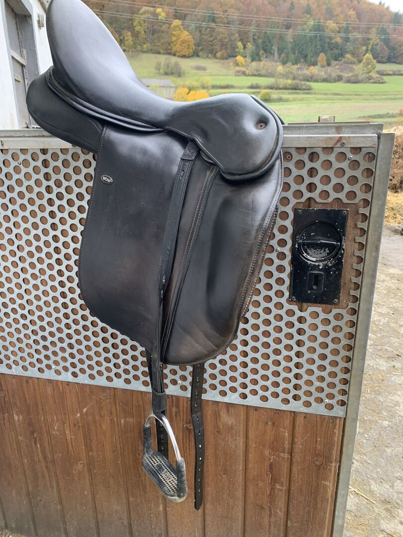 Siodło WOW - Sprzedam dobrze utrzymane siodło ujeżdżeniowe WOW, ponieważ mój koń nie jest już jeżdżony w wieku 28 lat. Siodło jest w bardzo dobrym stanie. Łęk: półokrągły, rozmiar panelu 2