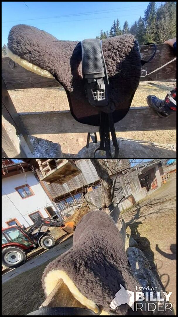 Siodło z jagnięcej skóry - Jak nowe siodło ze skóry jagnięcej z pasem 70 cm. Siodło było prawie nigdy nieużywane, więc skóra jagnięca jest nadal bardzo dobra.