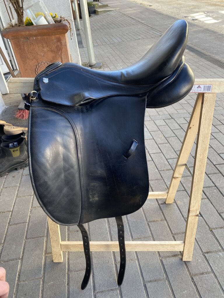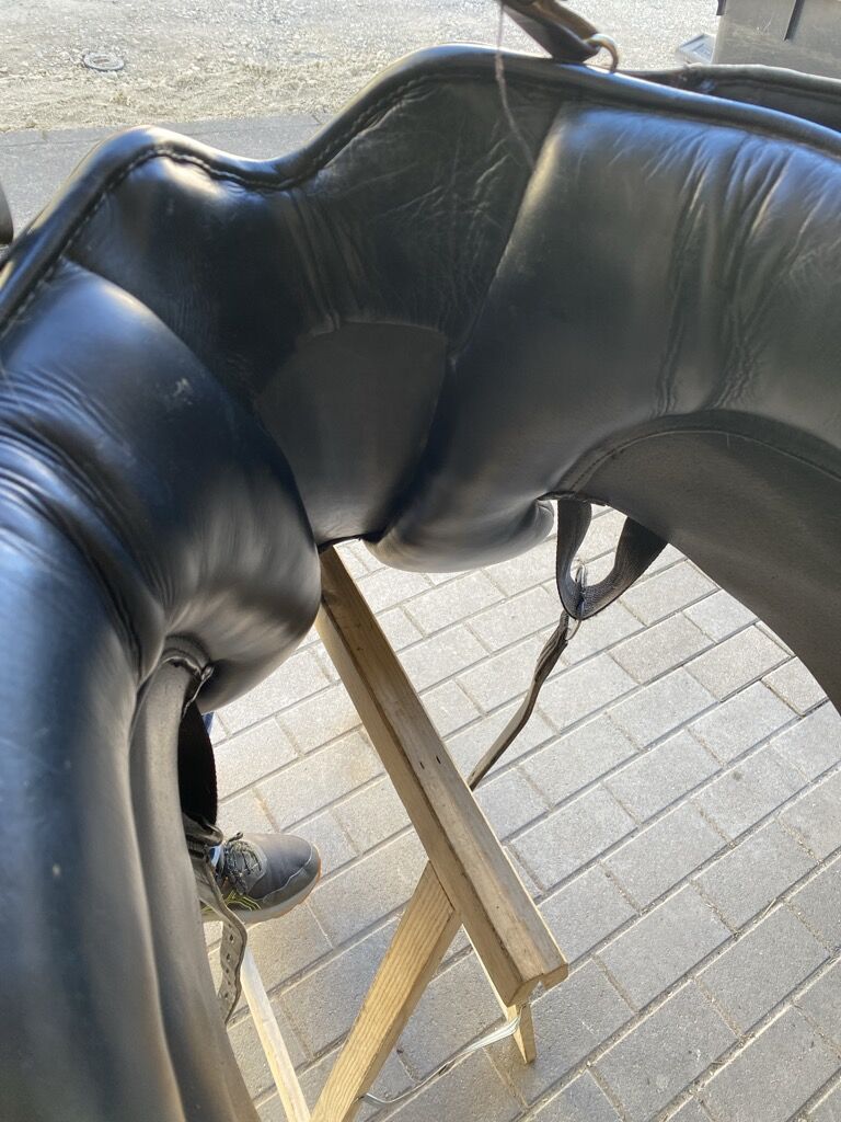 Siodło z zimną krwią od Massimo - Sprzedam siodło ujeżdżeniowe od Massimo dla bardzo szerokich i krótkich koni KW 40. Siodło jest świeżo wyściełane, ale nie pasuje idealnie na naszego zimnokrwistego konia.