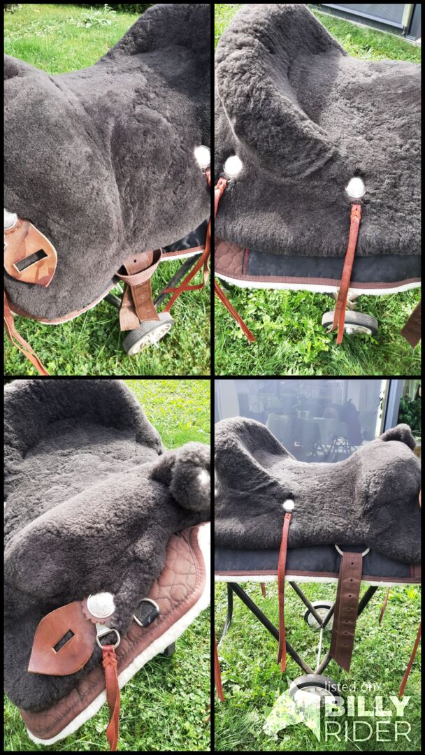 Siodło ze skóry jagnięcej Christ Saddle Diamond Plus - Sprzedaję tutaj moje prawie nieużywane siodło Christ lambskin Diamond Plus. Model siodła: Diamond Plus lambskin saddle Styl: western Rozmiar: Warmblood - leży płasko - na Haflingera Kolory: brązowy Futro siedziska brązowe, materiał brązowy, spód naturalny. Rolki kolanowe: tak (galerie) z rogiem Wysokość wełny: ok. 30 mm Inne: D-ringi do opcjonalnego mocowania strzemion
