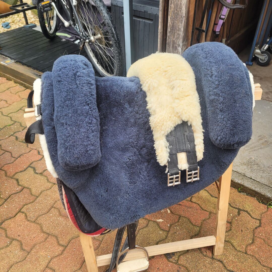 Siodło ze skóry jagnięcej Iberica plus od Christ - Sprzedaję moje siodło Iberca plus lambskin firmy Christ, w komplecie z popręgiem brzusznym i strzemionami oraz podkładką kompensacyjną Eskatron. Jeździłam w nim może pięć razy. Opis firmy: Siodło typu hiszpańskiego hide jest wykonane w całości ze skóry jagnięcej i sprawia wrażenie, jakbyś jeździł na chmurach. Siedzisko ma 30 mm wysokości, wyższe przednie i tylne łęki zapewniają dodatkowe wsparcie. Wyjmowane podkładki po lewej i prawej stronie zwiększają komfort siedzenia i chronią grzbiet konia.