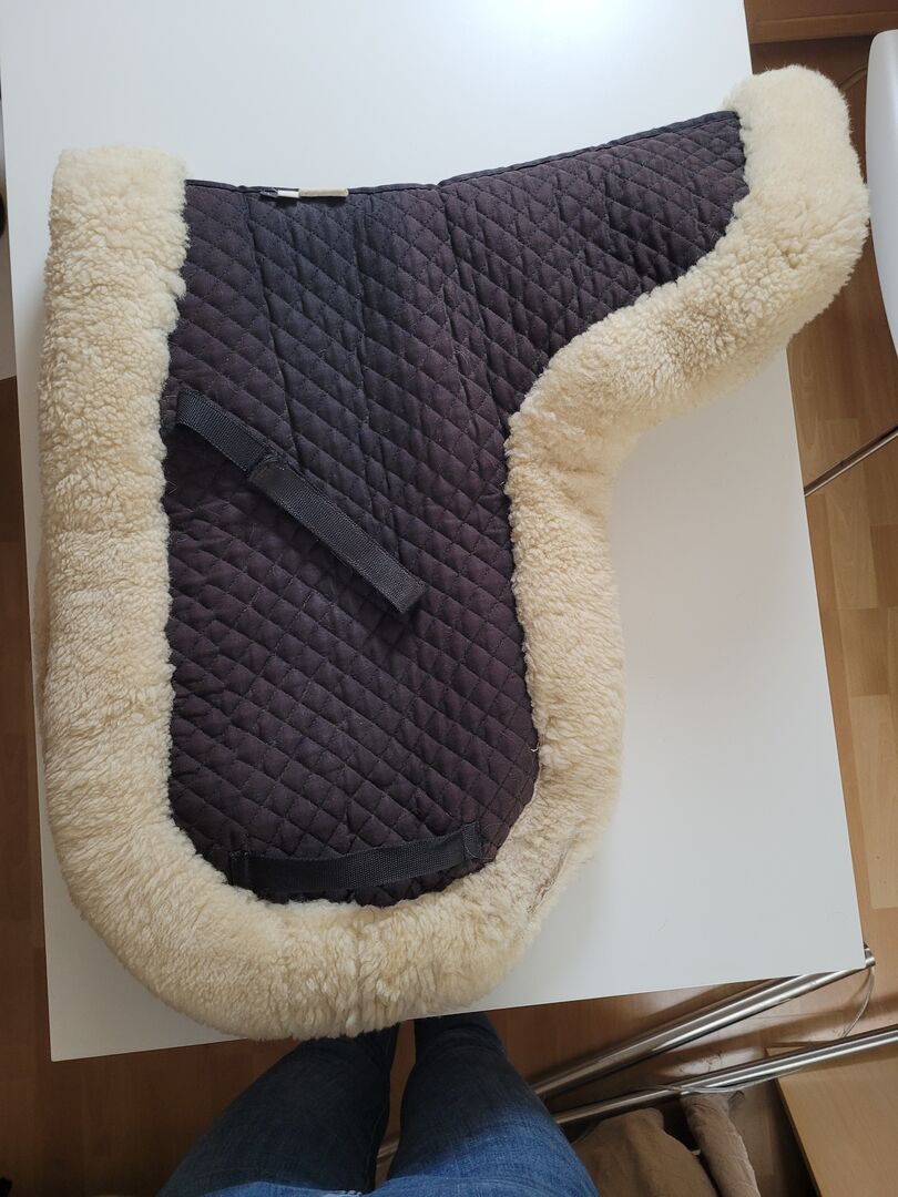 Siodło ze skóry jagnięcej / Loesdau / Ujeżdżenie - - Pokrowiec na siodło ze skóry jagnięcej - stan dobry, używany (patrz zdjęcia) - rozmiar: L - zostało wyczyszczone!