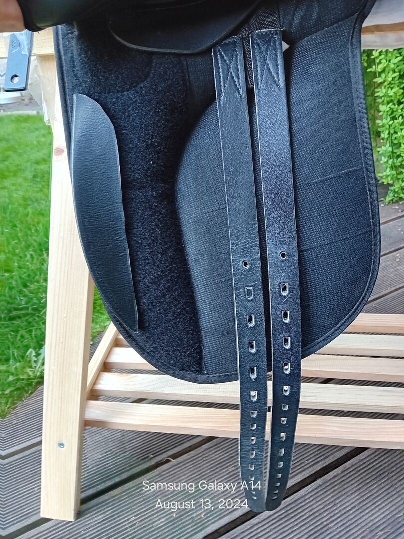 Siodło ze skóry syntetycznej - Bardzo lekkie siodło 3,5 kg. Bardzo dobre wykonanie i jakość, rzadko używane jako drugie siodło (dzieci mogły siodłać się same, ponieważ było tak lekkie). Niezwykle łatwe do czyszczenia, ponieważ można je prać...
