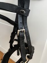Skóra Cavesson w rozmiarze VB Cob - Sprzedam rzadko używany, bardzo wysokiej jakości cavesson od Loesdau, powinien to być model Comfort (NP 100€). Rozmiar Thoroughbred, ale dobrze pasuje do mocnej hiszpańskiej głowy. Trzy pierścienie na czteroczęściowym nosku, dzięki czemu jest bardzo elastyczny do indywidualnej pracy. Wisi nieużywany od trzech lat, więc na metalowym nosku jest trochę nalotu, a powłoka również złuszczyła się w niektórych miejscach. Skóra jest jednak nadal miękka i elastyczna, a metal łatwo się przesuwa. Nosek i zauszniki również są przyjemne i miękkie. Nadal szukam paska do przymocowania bitu, nigdy go nie używałem i gdzieś go przechowywałem.