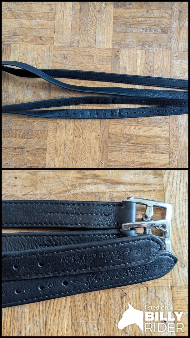 Skóry na strzemiona - Dobrze utrzymane skóry strzemion marki Felix Bühler. Skóra jest bardzo miękka i elastyczna. Długość 145 cm.