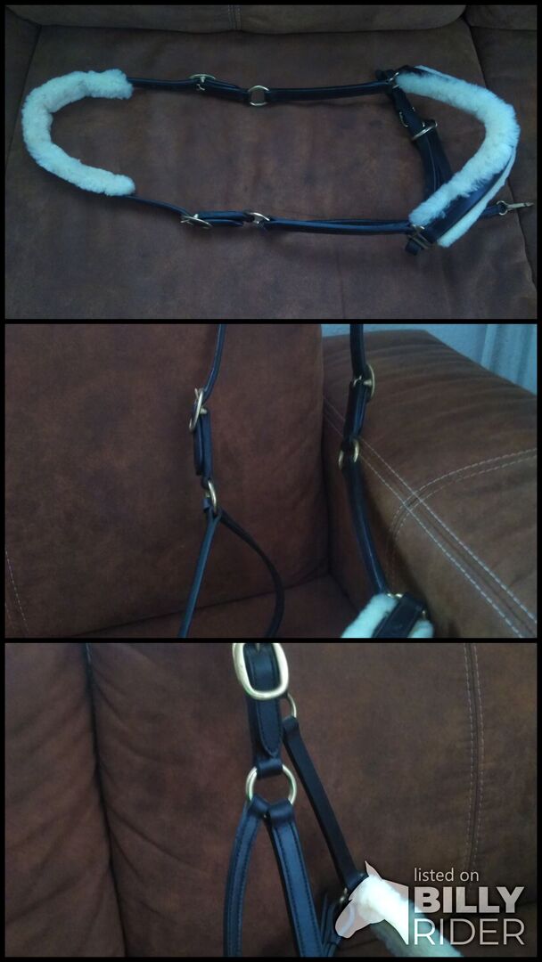 Skórzana halterka z jagnięcą skórą - Oferuję do sprzedaży skórzaną halterkę stajenną z jagnięcą skórą. Nieużywany rozmiar WB