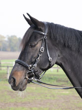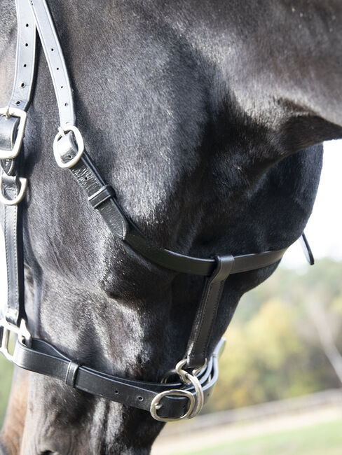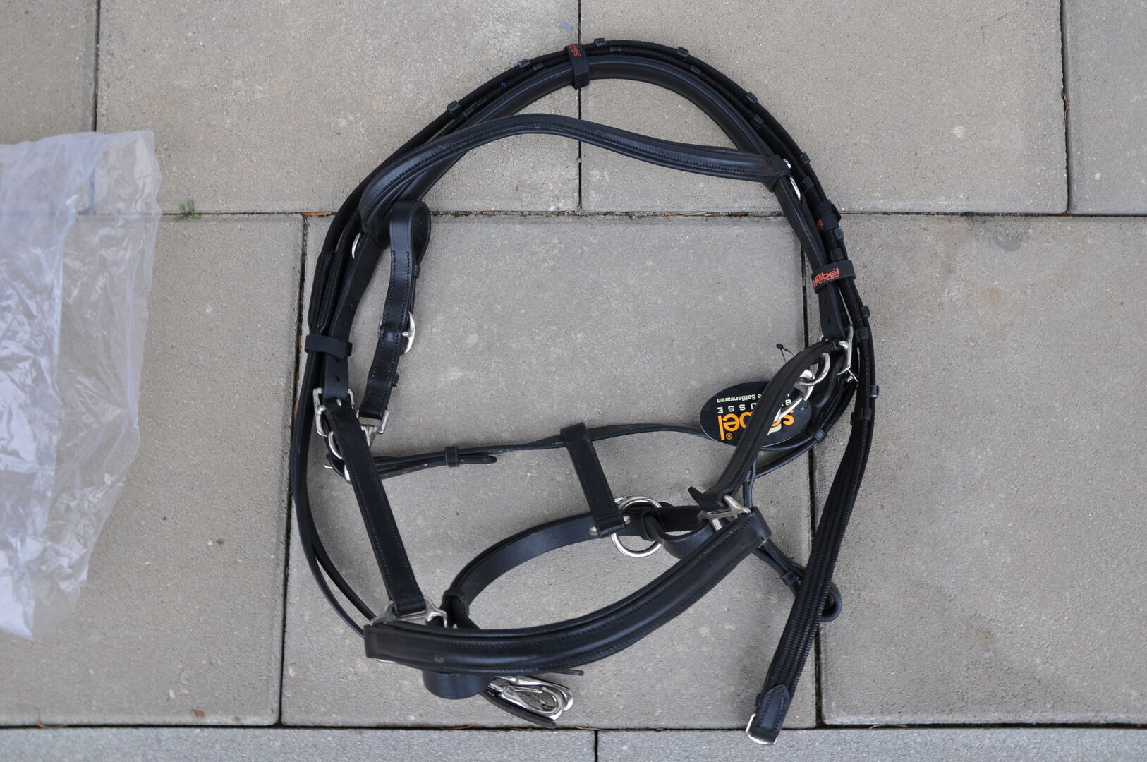 Skórzana uzda spacerowa Busse z lejcami XWB - Na sprzedaż jest nowa uzda jeździecka SOLIBEL w kolorze czarnym firmy Busse, przedmiot jest nieużywany i został przymierzony tylko raz. Prawdziwa skóra do jazdy konnej i równoległego użytkowania bez wędzidła zintegrowany kantar z miękką wyściółką w okolicy nosa i łatwo regulowanym obwodem miękko wyściełany naczółek W komplecie sznurki z zatrzaskami rozmiar XWB
