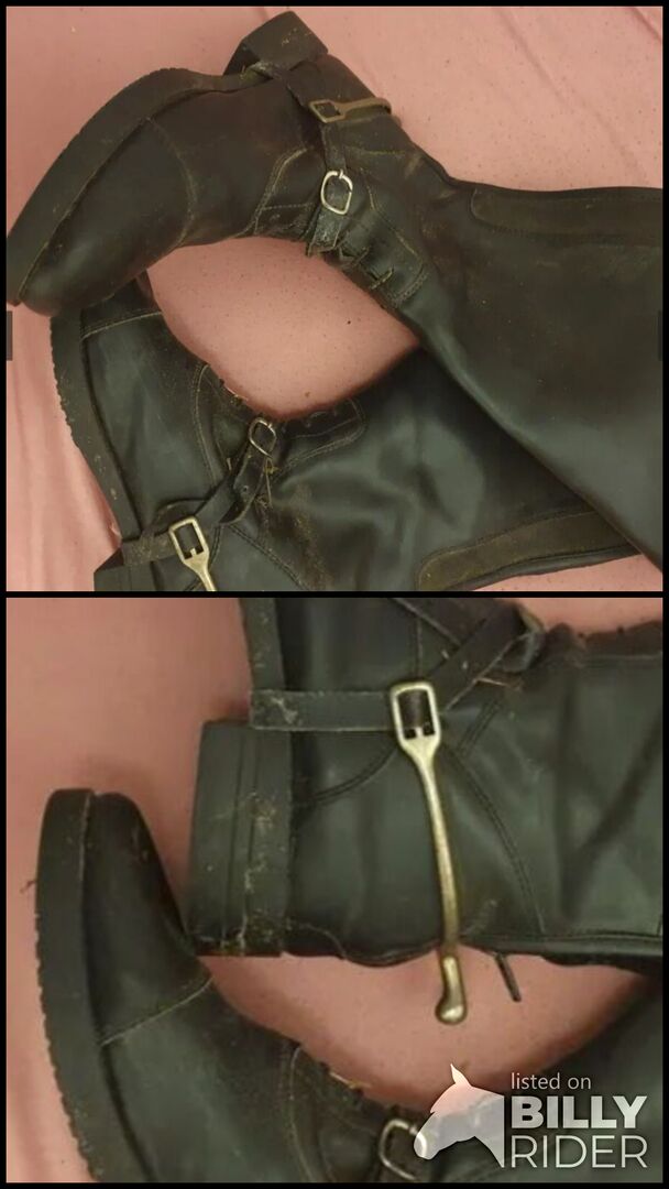 Skórzane buty do jazdy konnej - Sprzedaję skórzane buty do jazdy konnej na szersze łydki. Spurs są dołączone bezpłatnie. Nie były często noszone i dlatego są w bardzo dobrym stanie.