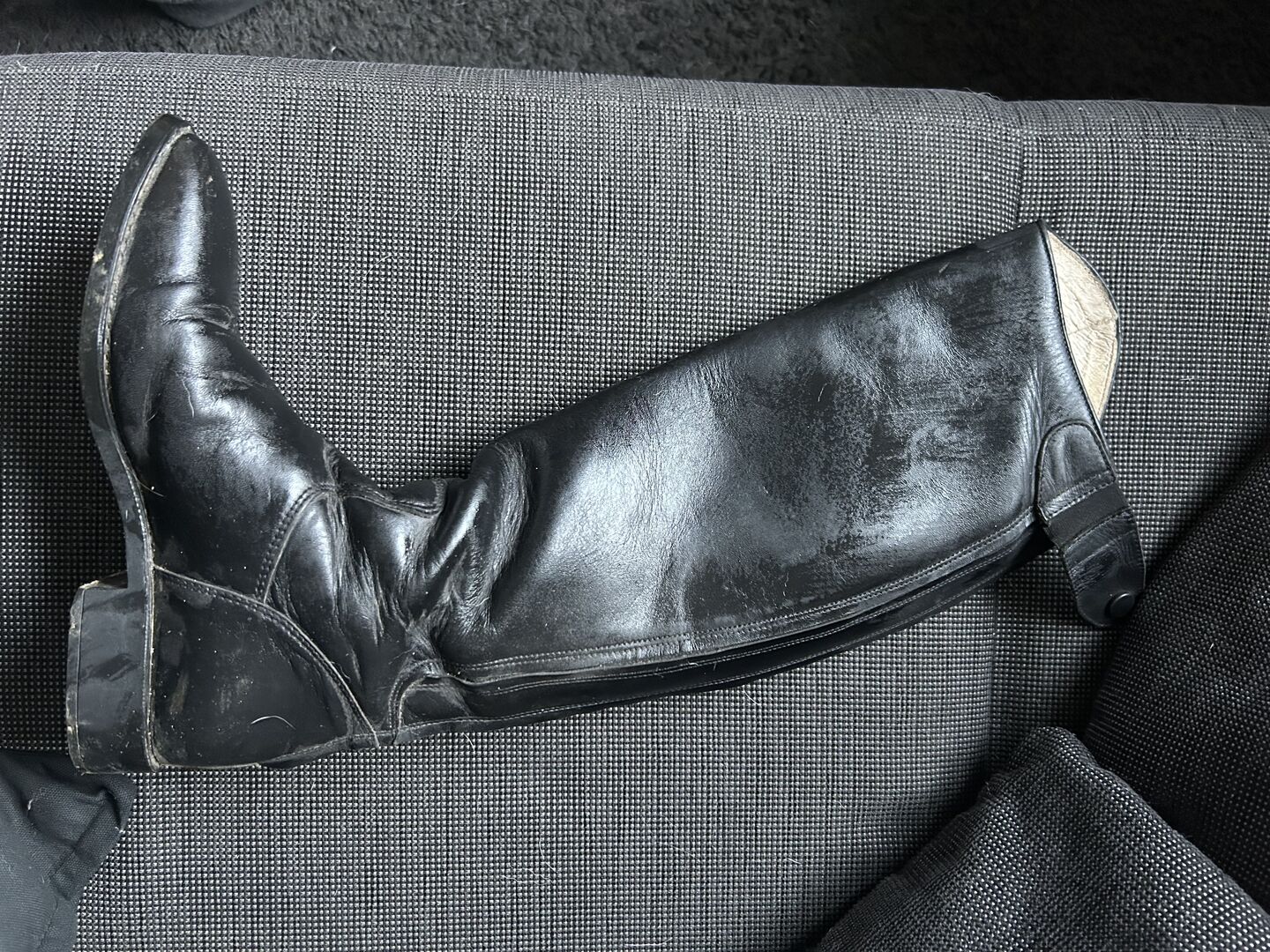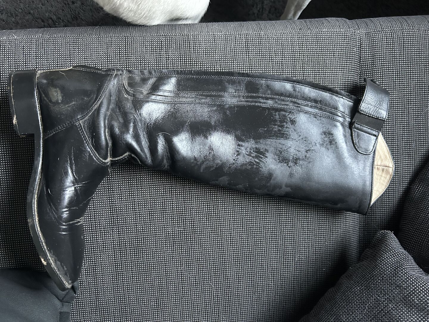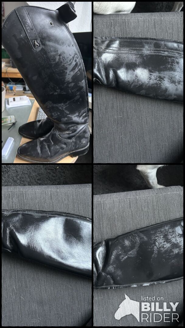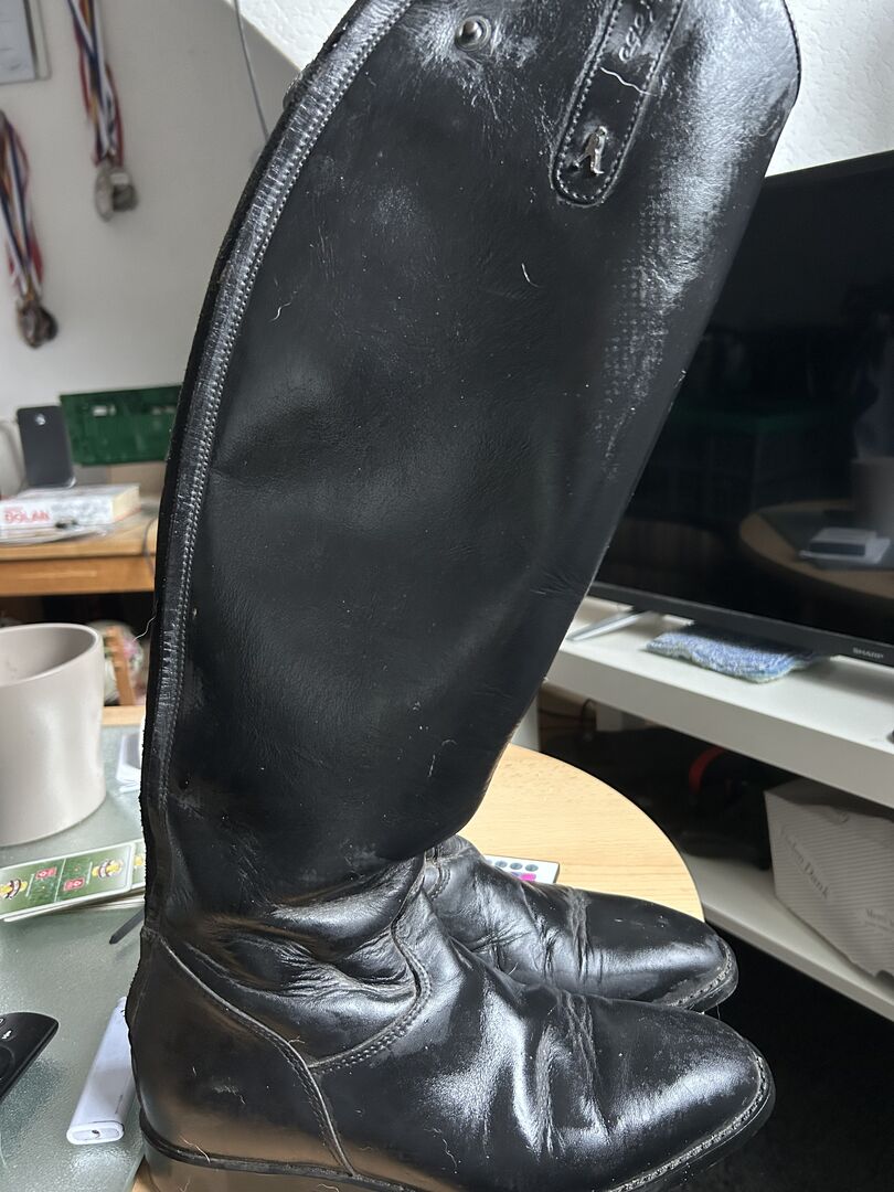 Skórzane buty do jazdy konnej - Na sprzedaż trochę zużyte buty jeździeckie w kolorze czarnym w rozmiarze 38 48 / 35 Ślady użytkowania patrz zdjęcia Nowe kosztują około 170€ Proszę o kontakt, jeśli jesteś zainteresowany. Koszty wysyłki 5€ 📦
