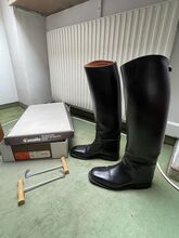 Skórzane buty do jazdy konnej - Die Lederreitstiefel wurden nur wenige Male getragen und sind in einem Top-Zustand. Grösse 5 1/2, weitere Masse siehe Fotos. Oryginalne opakowanie