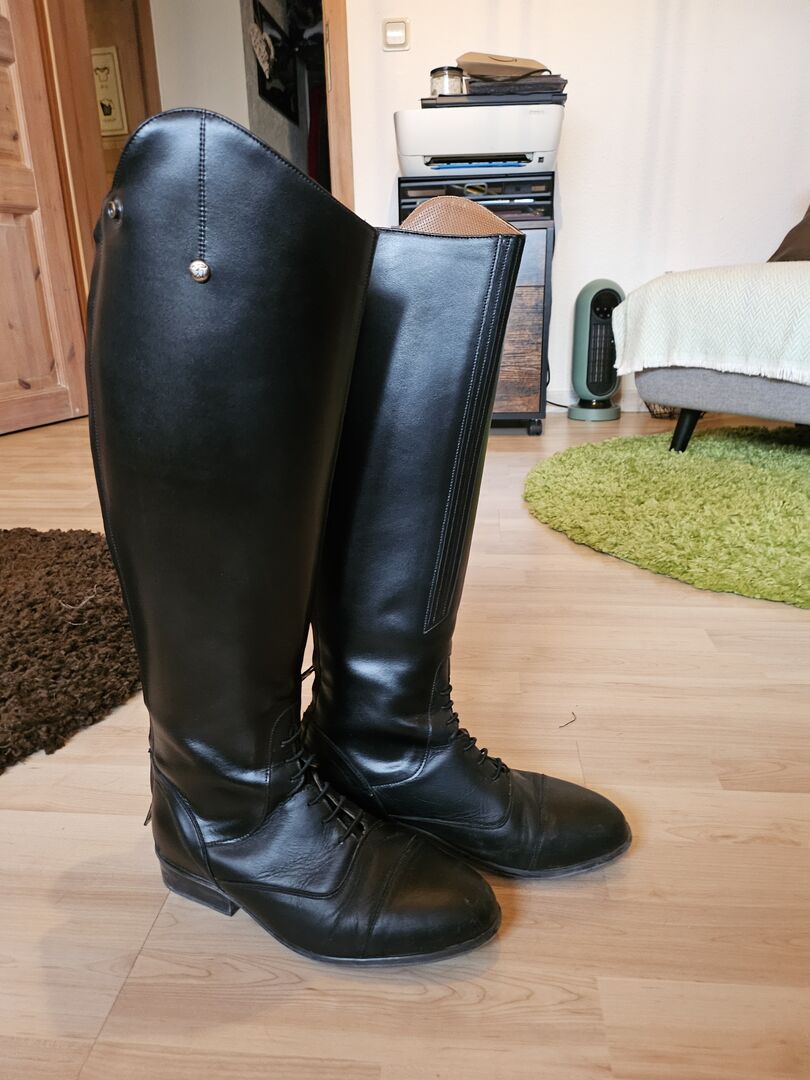 Skórzane buty jeździeckie Sergio Grasso rozmiar 38 - Na sprzedaż jak nowe buty jeździeckie z zamkiem błyskawicznym i zatrzaskiem od Sergio Grasso w rozmiarze 38, w tym paski do butów i torba na buty. Buty były noszone tylko kilka razy i nie mają żadnych śladów zużycia. Dalsze pomiary można znaleźć na zdjęciach, jeśli masz dodatkowe pytania, nie wahaj się ze mną skontaktować