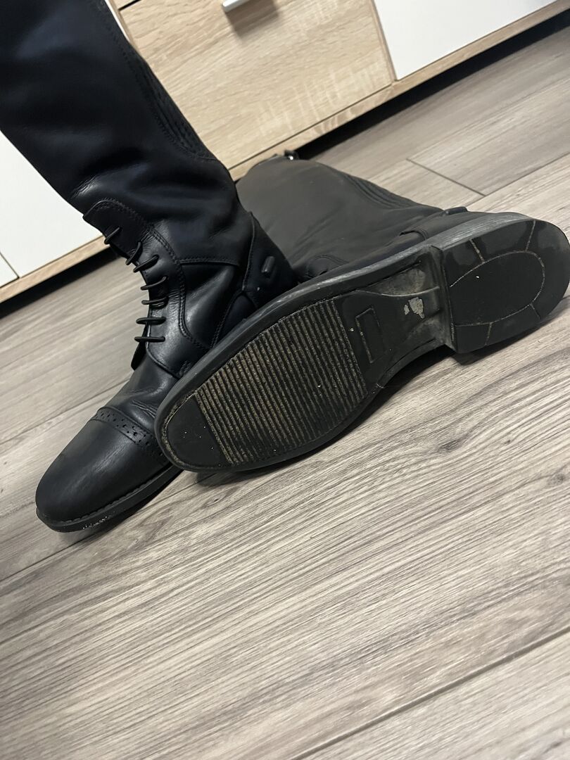 Skórzane buty jeździeckie z brokatową krawędzią - Skórzane buty jeździeckie prawie nie były używane, ponieważ nie są już używane do jazdy konnej, więc są w super / najlepszym stanie. Nie mają żadnych wad.