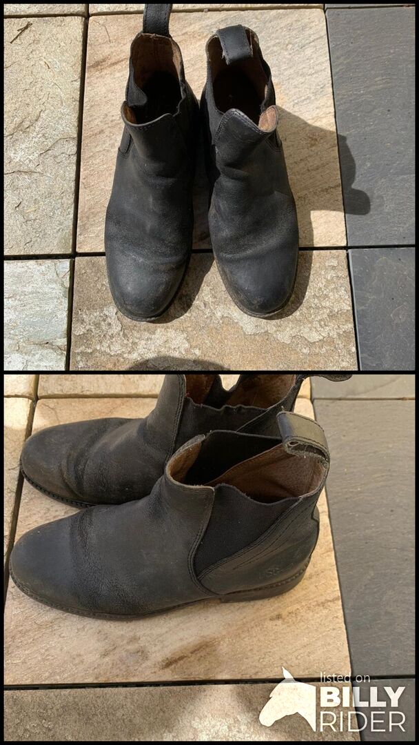 Skórzane buty za kostkę USG - Czarne skórzane buty do kostki w rozmiarze 38. Mają niewielkie ślady użytkowania na zewnątrz (patrz zdjęcie), a podeszwa jest już lekko zużyta. Mimo to nadal mają dobrą przyczepność.