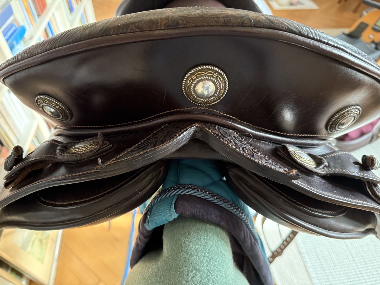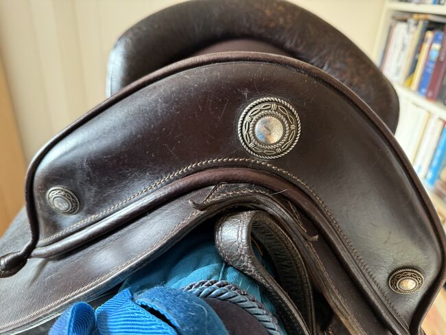 Skórzane siodło barokowe Reinholda Pechera, krótki grzbiet, hiszpańskie - Bardzo ładne i super wygodne barokowe siodło El Noble ze skórzanym łękiem od producenta siodeł El Sueño Reinholda Pechera. Siodło zostało stworzone dla krótkiego hiszpańskiego konia. Zdecydowałem się na skórzany łęk, ponieważ mój koń był jeszcze młody i niezbyt umięśniony. Siodło praktycznie "urosło" wraz z koniem bez konieczności zmiany, jeździło przez około 2 lata, ponieważ było dostępne drugie siodło, więc siodło ma niewiele śladów użytkowania, a wyściółka jest nienaganna, proszę odnieść się do zdjęć w celu uzyskania pomiarów. Siedzisko jest wykonane z wytrzymałej skóry, panele boczne i galeria są wykonane z wytłaczanej wyściełanej skóry, cienkiej, aby być bliżej konia. W komplecie krótki popręg i strzemiona. Nowa cena 3,800 euro. Dostępna faktura