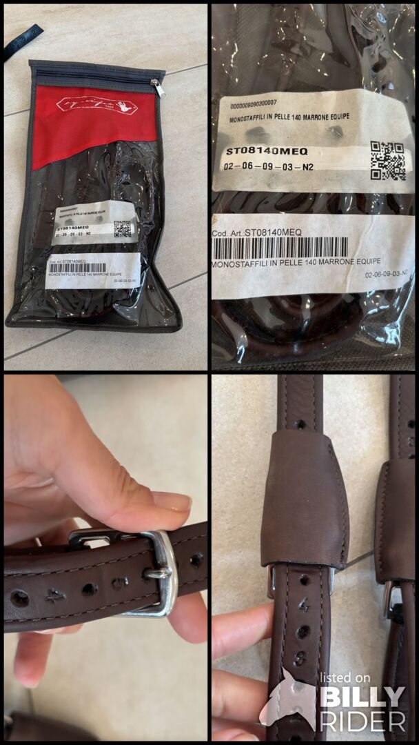 Skórzane strzemiona mono Selleria Equipe brązowe 140 cm - Skórzane strzemiona Selleria Equipe Mono. Niestety kupiłem je za krótkie i dlatego użyłem ich tylko raz. Są więc jak nowe. Jest na nich napisane 140 cm.
