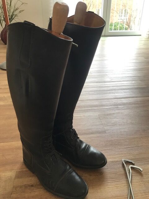 Skórzane szpilki jeździeckie Rozmiar 41/7 - Skórzane buty jeździeckie, rozmiar 41/7 z Anglii Wysokość cholewki 48 cm z akcesoriami Napinacz, ściągacz, podnosek