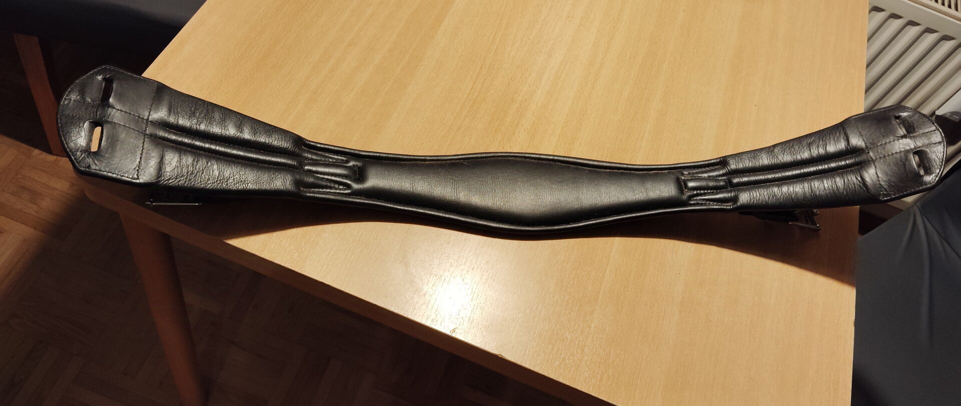Skórzany miękki krótki popręg Euroriding - Sprzedam czarny skórzany krótki popręg marki Euroriding. Jest w dobrym stanie. Ma elastyczne wstawki po obu stronach i ma 70 cm długości z miękką wyściółką od wewnątrz. Zapraszam do składania propozycji cenowych. Wysyłka jest oczywiście możliwa za opłatą.