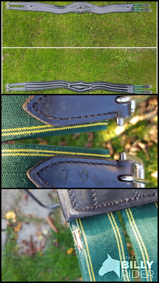 Skórzany pas do siodła 140 cm - Sprzedam używany skórzany pas do siodła firmy Loesdau. Ma anatomiczny kształt, jest wykonana z miękkiej, wyściełanej skóry wysokiej jakości, z elastyczną gumą po jednej stronie (lewej) i klamrami rolkowymi ze stali nierdzewnej.