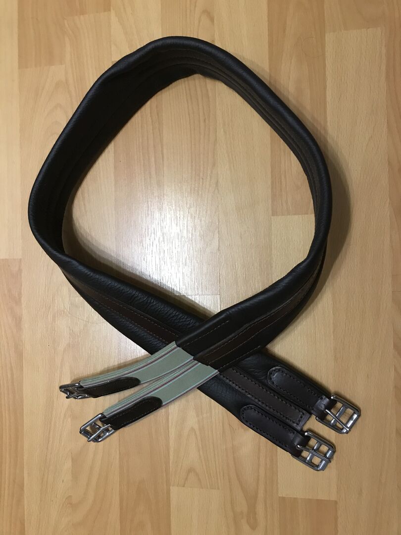 Skórzany pas do siodła brązowy 135 cm nowy - Skórzany pas do siodła, brązowy, długość 135 cm, elastyczny z jednej strony, w najwęższym miejscu 6 cm, w najszerszym miejscu 9 cm, nowy, wysyłka DHL 3,79 €
