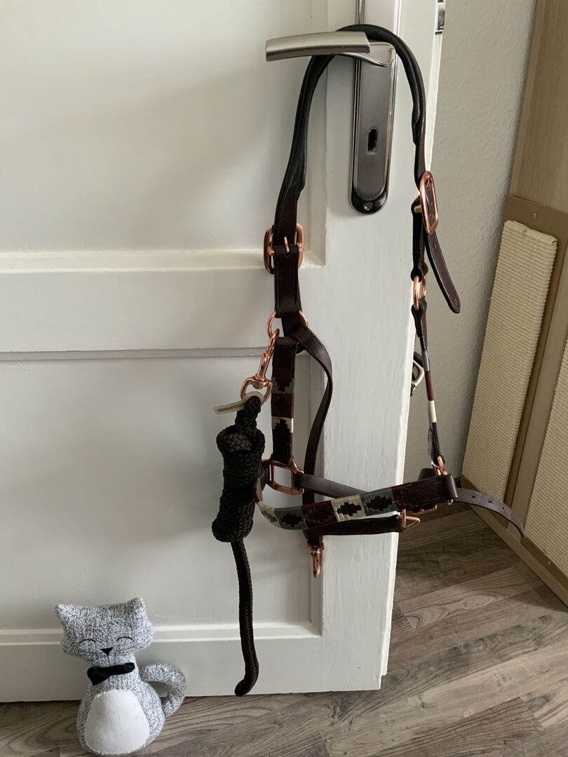 Kantar był założony na konia dwa razy, ale niestety okazał się za duży.