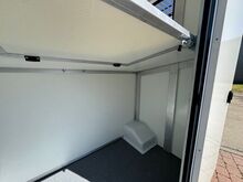 Dostęp do schowka na siodło można uzyskać przez tylne drzwi za pomocą składanego systemu. Umożliwia to karmienie lub uzbrajanie koni, gdy rampa jest zamknięta. W schowku na siodło znajduje się półka po prawej stronie i 2 uchwyty na siodło i uzdy po lewej stronie.