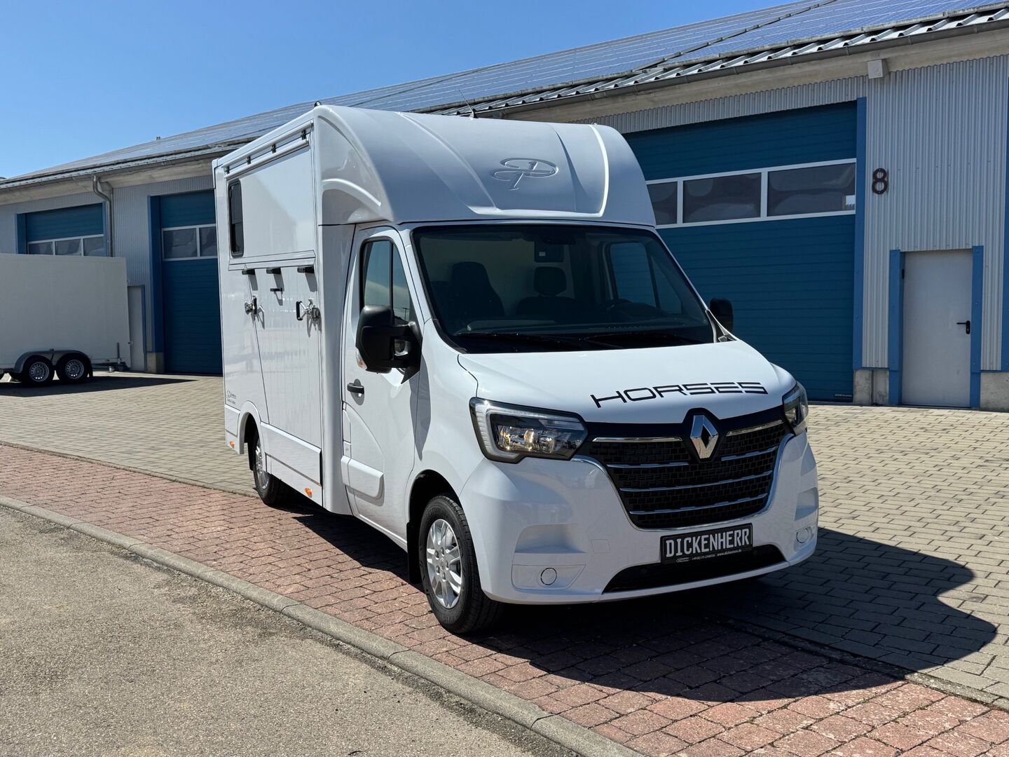 Skrzynia ładunkowa Renault Master 3.5t klimatyzowany nowy pojazd 2290KG samojezdny - Nowy pojazd Dickenherr 2-Ride Stallion light 2290KG Natychmiast dostępny transporter 3,5t dla 2 koni z przegrodą dla ogierów Twój nowy transporter jest gotowy: