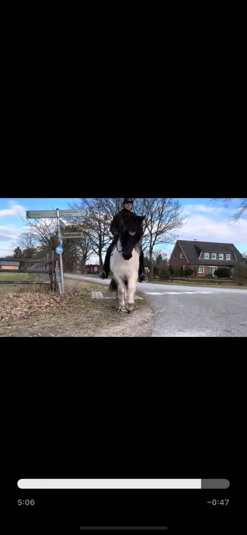 Oto Framtíð - słodka mała klacz tolt, która jest po prostu urocza, wygodna i nieskomplikowana! Przy wzroście 1,30 m (z dobrą wolą) jest jednym z mniejszych koni islandzkich, ale jej wielka osobowość, niekończący się tölt i łagodna natura sprawiają, że jest czymś wyjątkowym. A co najbardziej lubi robić? Tölt - i to w ciągłej pętli! Wolno, średnio, najlepiej bez wodzy - najważniejszy jest tölt! Jest super miękka do siedzenia, prawdziwy koń rozpieszczający plecy, który niesie cię delikatnie i zrelaksowany podczas każdej sesji jeździeckiej. Dzięki swojej wspaniałej czarno-białej kurtce i wielkiej gwieździe nie tylko przyciąga wzrok, ale dzięki swojej przyjaznej, wesołej naturze jest także koniem, który od razu weźmiesz sobie do serca. Dlaczego Framtíð jest idealnym koniem dla ciebie?