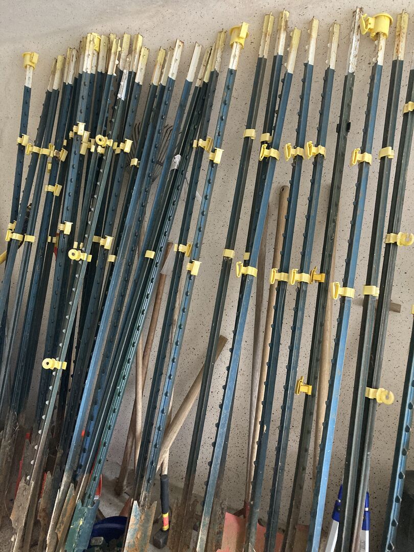 Słupek T do ogrodzenia wybiegu - 53 słupki T 2,13 m (wysokość ogrodzenia ok. 1,60 m), słupki były wbijane tylko raz (nowa cena za słupek 14€ = 742€), teraz za słupek 7€.